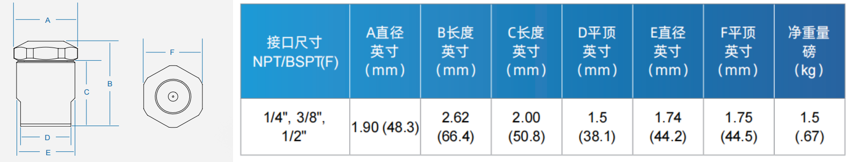 所有部件均固定在喷嘴帽上,易于快速装卸;另外,用手拧紧就能达到10000psi(690bar)的工作压力,无需使用特殊的工具。
